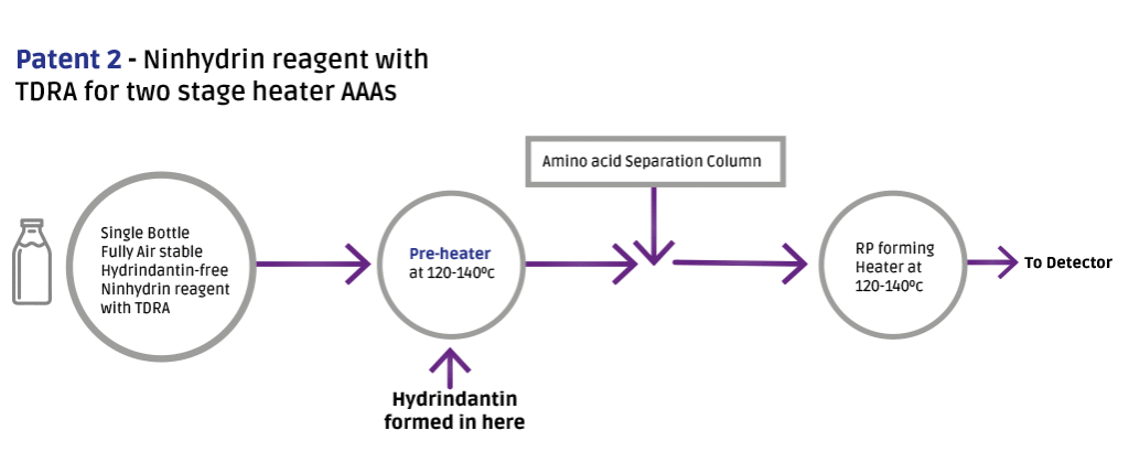 The chemistry behind Patent 1 is designed to allow JPP’s hydrindantin-free reagents to be used on amino acid analysers as presently universally configured– ie on ‘single heating chamber’ instruments.